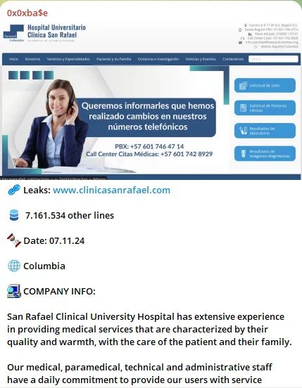 0x0xba$e Allegedly is Selling Data of Hospital Universitario Clinica San Rafael