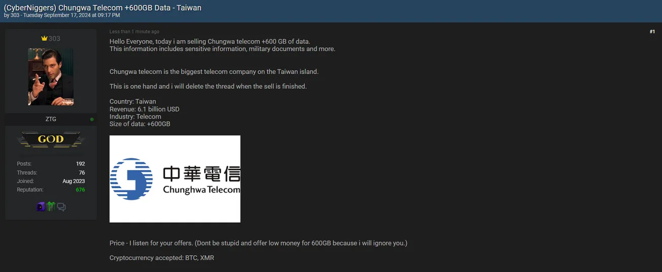 🚨 Title: Alleged sale of Chunghwa Telecom data
