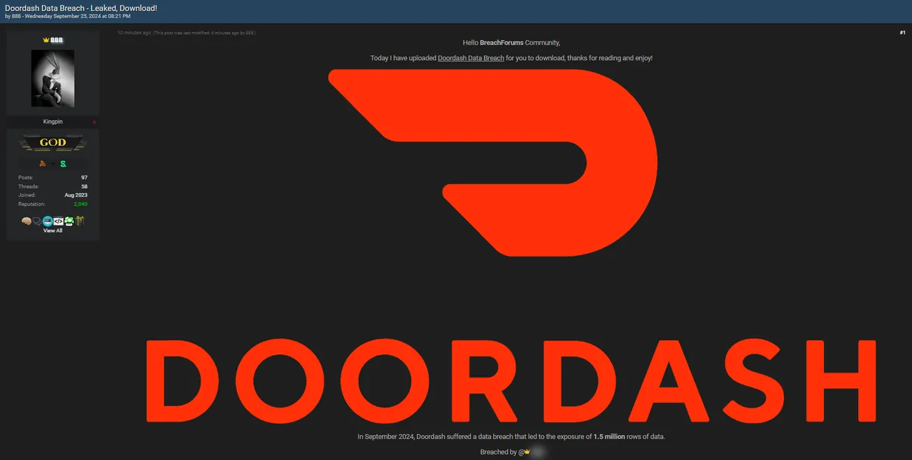 🚨 Title: Alleged data leak of DoorDash