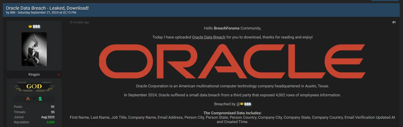 🚨 Title: Alleged data leak of Oracle