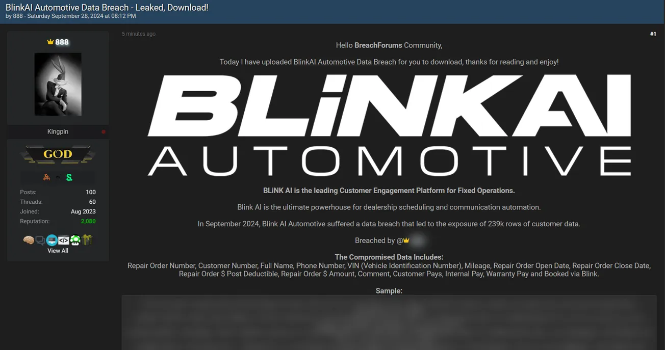 888 Allegedly Has Leaked the Data of BLiNK AI Automotive
