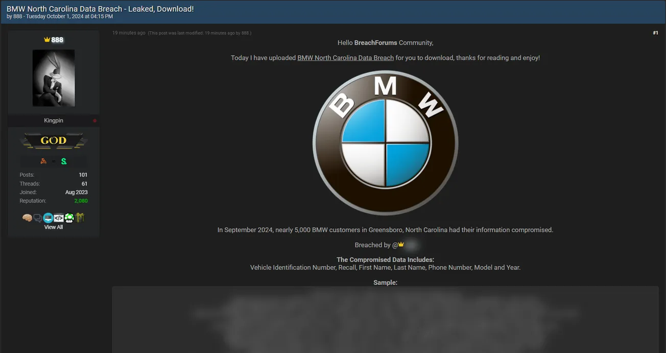 888 Allegedly Leaked Data of a BMW USA Dealership