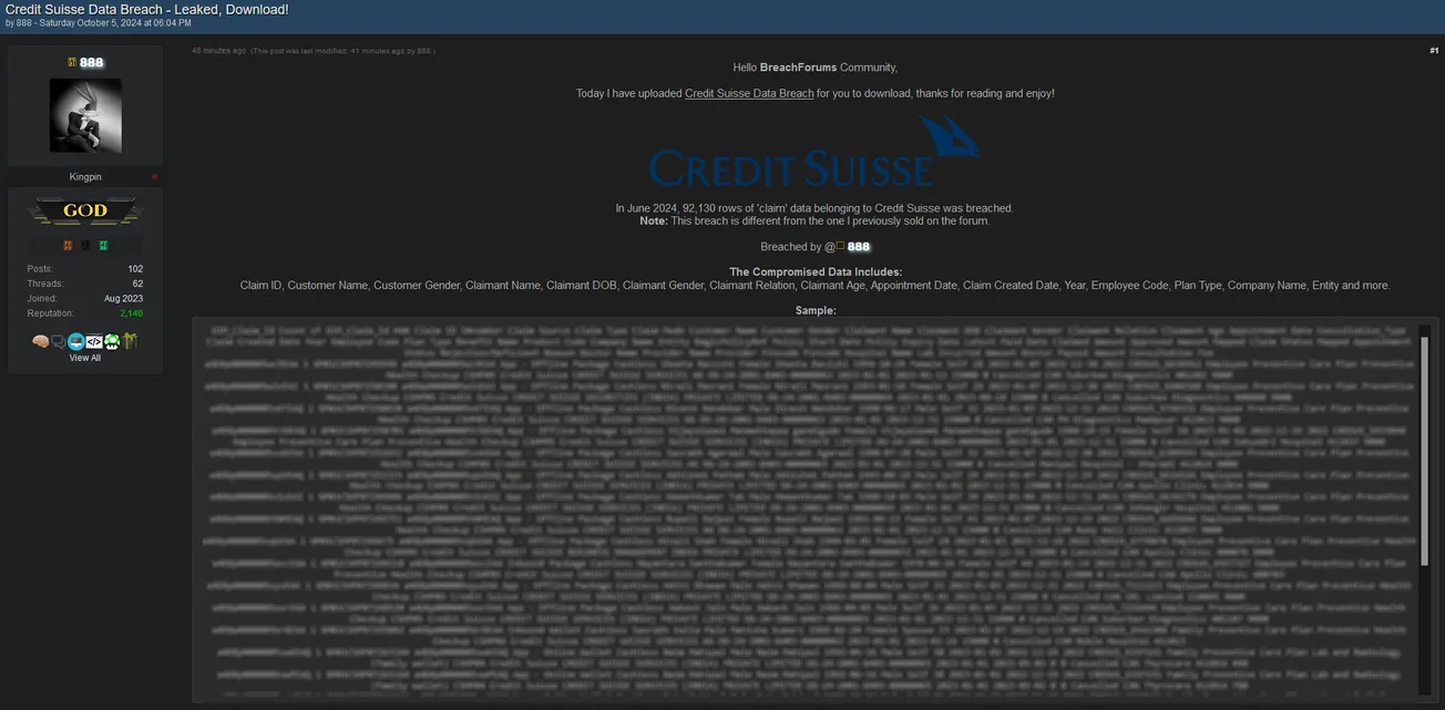 🚨 Title: Alleged data leak of Credit Suisse