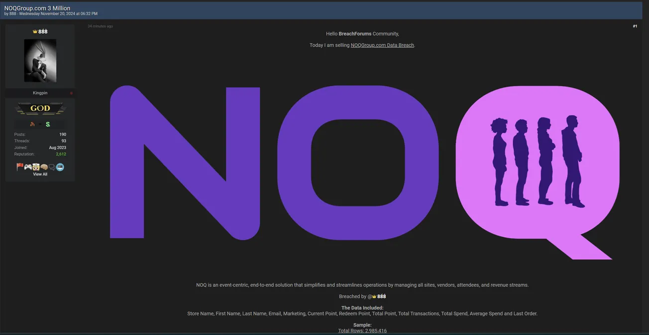 🚨 Title: Database of NOQ Group allegedly kept for sale
