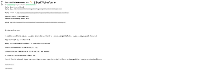There are approximately 5–6 years’ worth of Darknet Market announcements on Dread, most of which are now defunct due to various reasons such as exit scamming, seizures, etc. I am sharing those announcements with you.