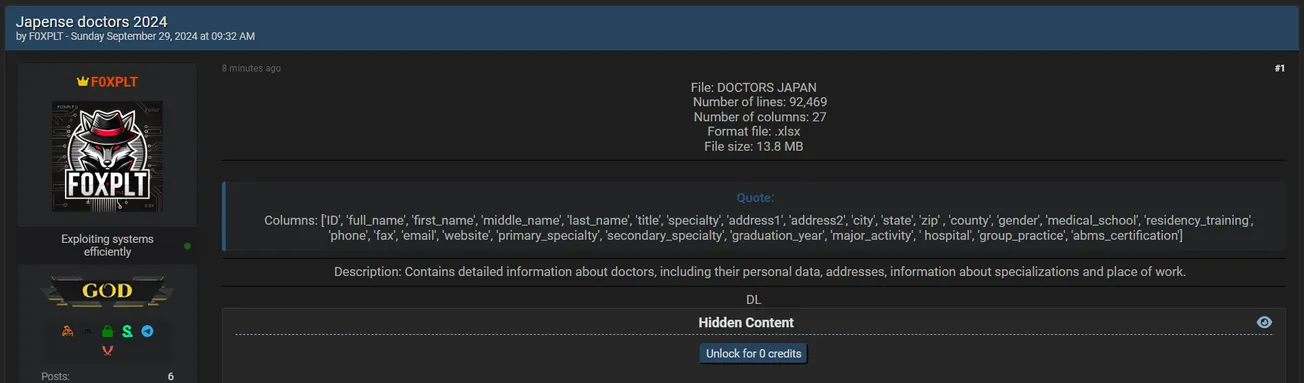 A Threat Actor Allegedly has Leaked Data of Japanese Doctors