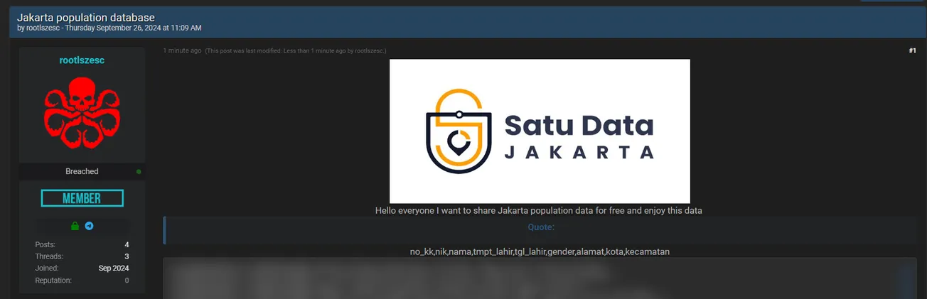 A Threat Actor Allegedly has Leaked Jakarta Population Database