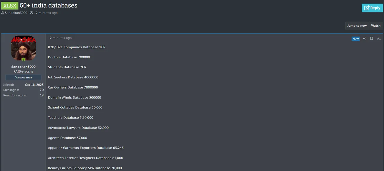 🚨 Title: Allegedly leaked Indian database