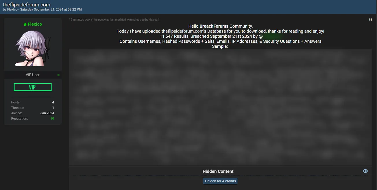 A Threat Actor Allegedly has Leaked The FLipside Forum Database