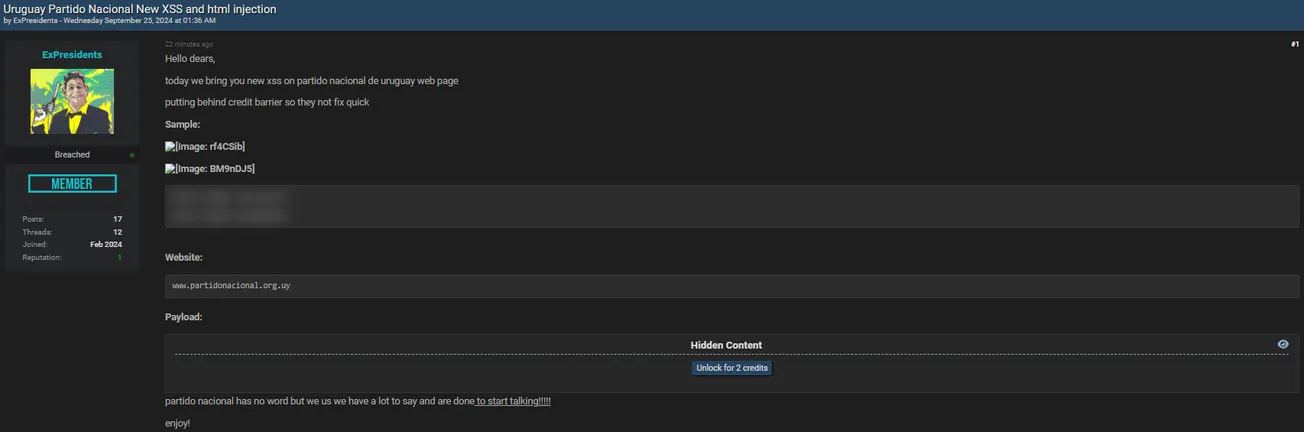 A Threat Actor Allegedly Has Leaked Vulnerabilities in the Website of Partido Nacional