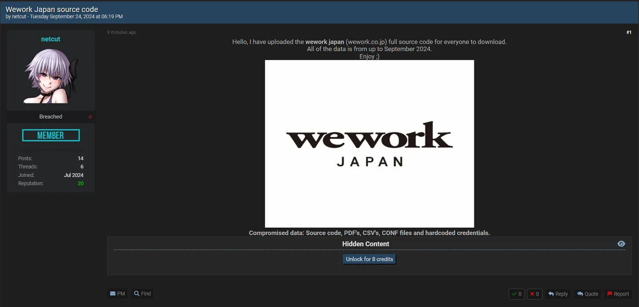 A Threat Actor Allegedly has Leaked WeWork Japan Data