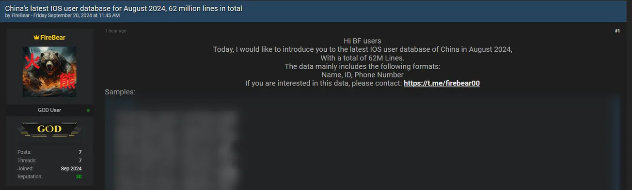 A Threat Actor Allegedly is Selling Data of China's iOS Users
