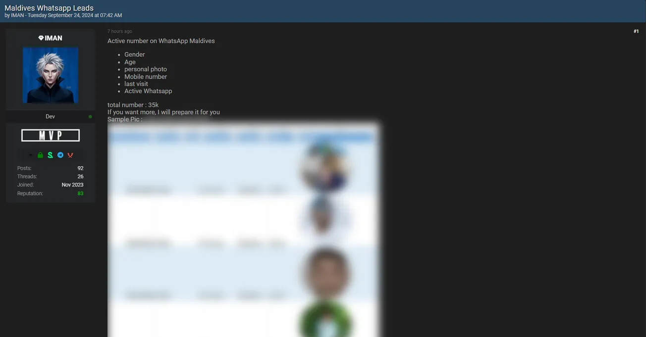 A Threat Actor Allegedly is Selling Maldives WhatsApp Leads