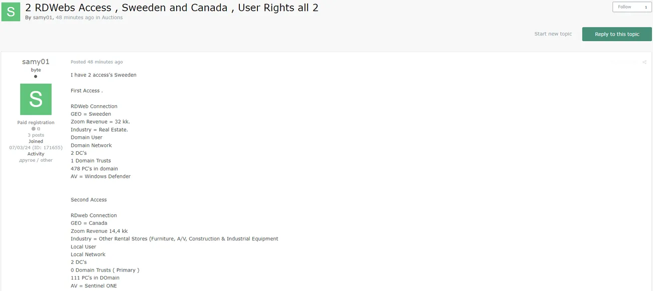 A Threat Actor Allegedly is Selling RDWeb Access to an Unidentified Canadian Company