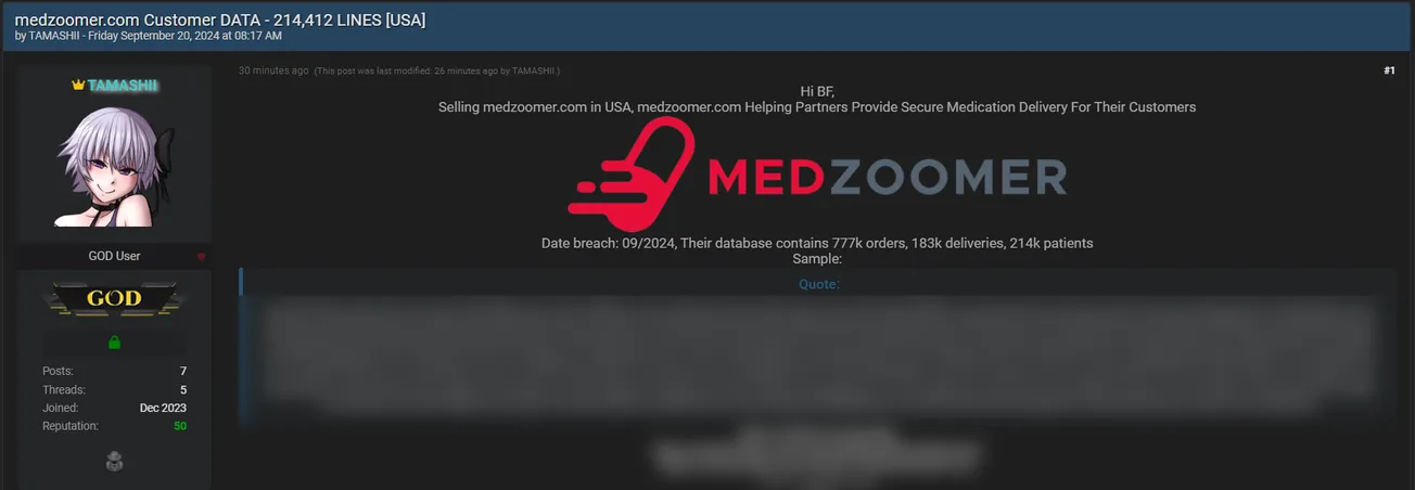 A Threat Actor Allegedly is Selling the Database of Medzoomer