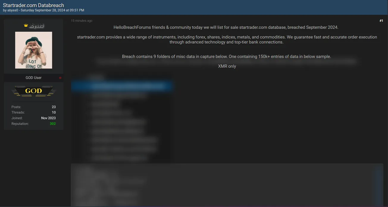 🚨 Title: Alleged sale of Startrader database