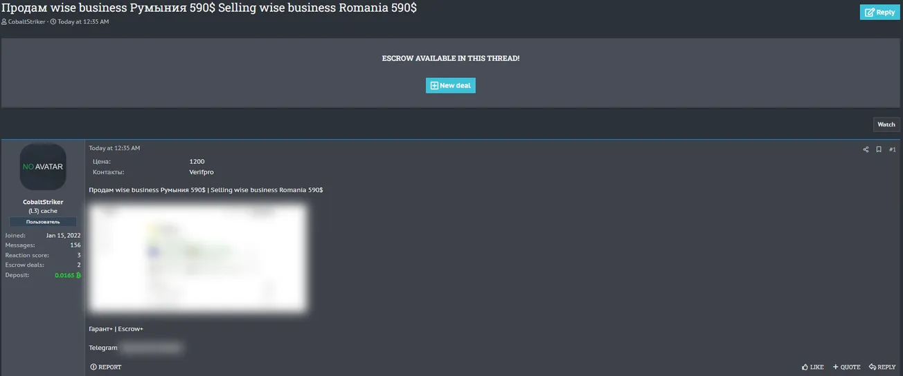 A Threat Actor Allegedly is Selling Wise Business Romania