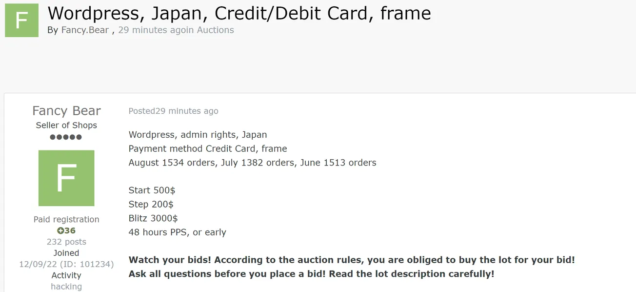 A Threat Actor Allegedly is Selling WordPress Access of an Unidentified Organization in Japan