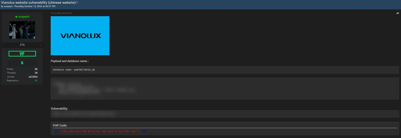 A Threat Actor Allegedly Leaked a Vulnerability in the Website VIANOLUX