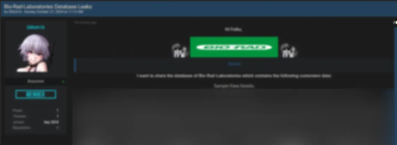 A Threat Actor Allegedly Leaked Bio-Rad Laboratories, Inc Database