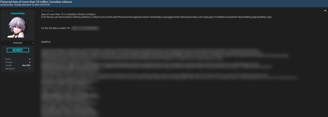 A Threat Actor Allegedly Leaked Canadian Citizens' Data