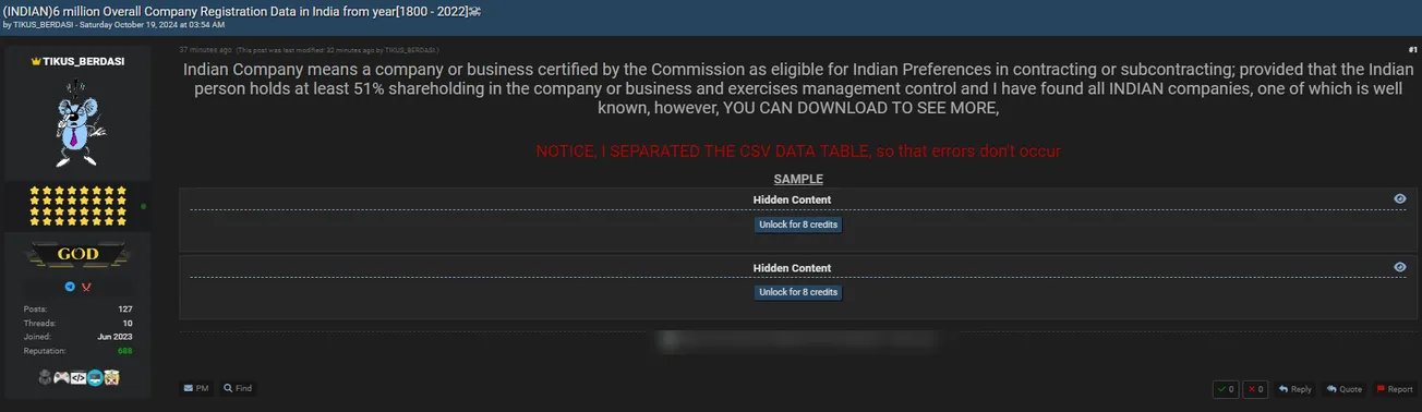 A Threat Actor Allegedly Leaked Company Registration Data from India