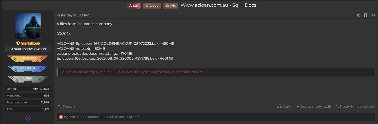 A Threat Actor Allegedly Leaked Data of ACLoan