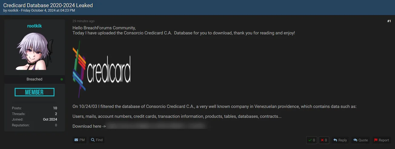 A Threat Actor Allegedly Leaked Data of Consorcio Credicard