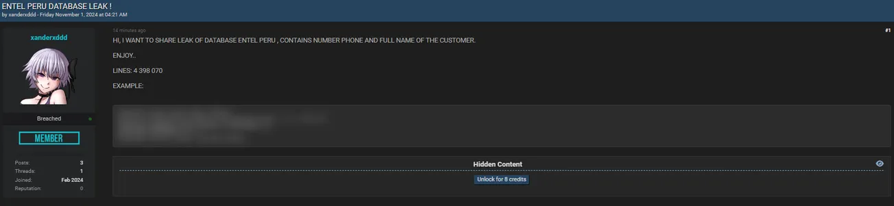 A Threat Actor Allegedly Leaked Data of Entel Perú