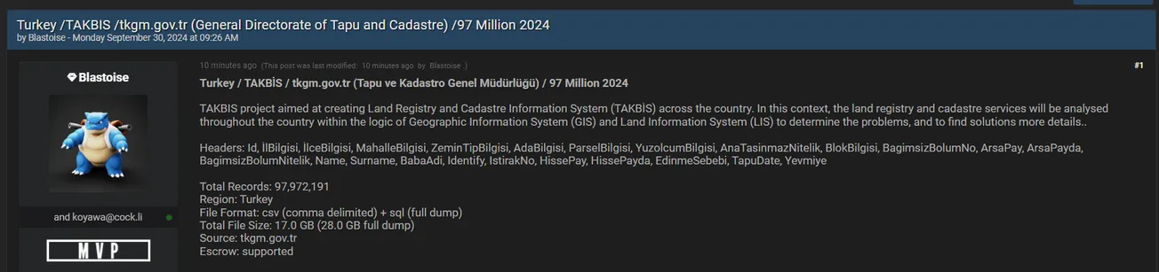 A Threat Actor Allegedly Leaked Data of General Directorate of Land Registry and Cadastre