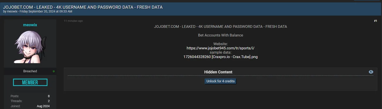 A Threat Actor Allegedly Leaked Data of Jojobet