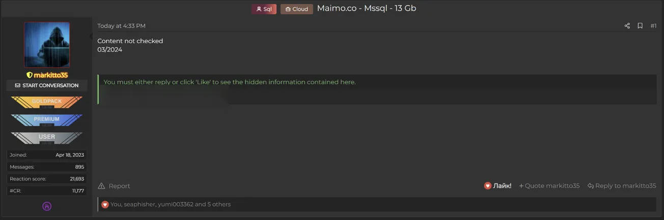 A Threat Actor Allegedly Leaked Data of Maimo