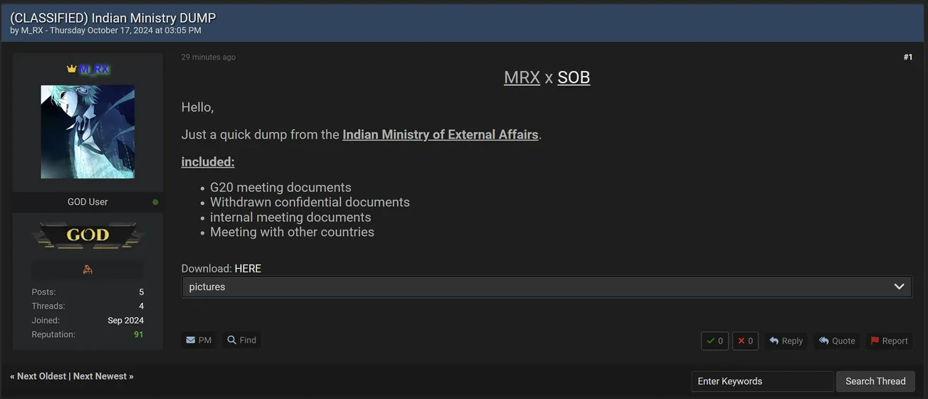 A Threat Actor Allegedly Leaked Data of Ministry of External Affairs (MEA)