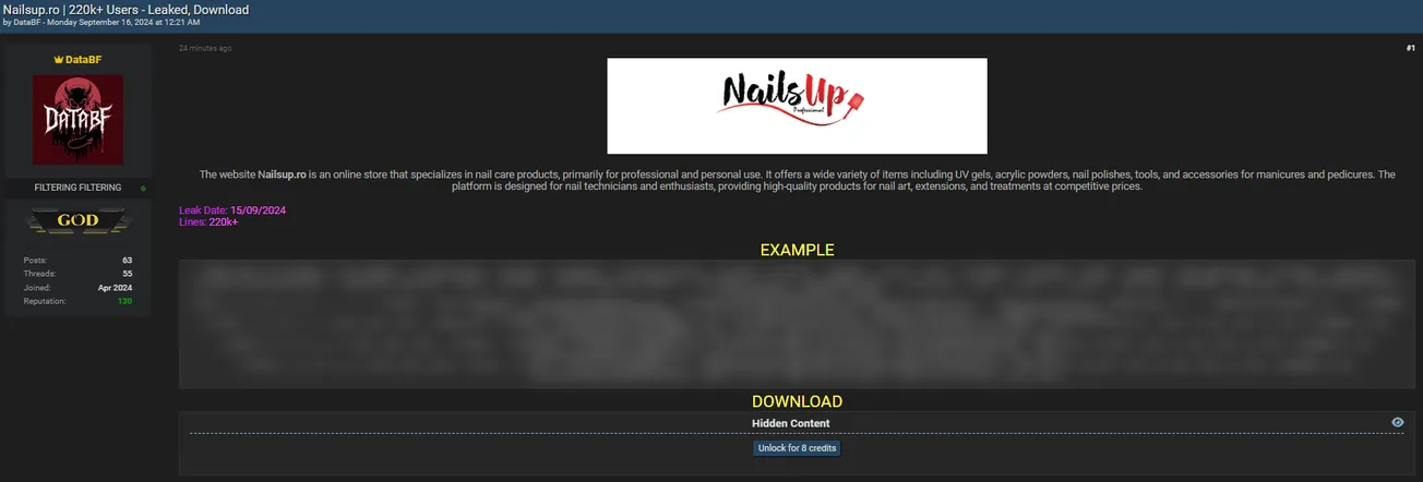 A Threat Actor Allegedly Leaked Data of NailsUp