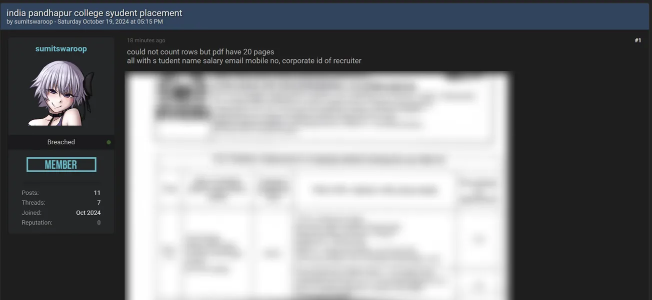 A Threat Actor Allegedly Leaked Data of SVERI's College of Engineering Placement