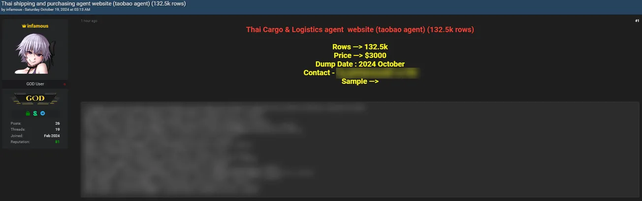🚨 Title: Alleged data leak of Thai Cargo & Logistics company