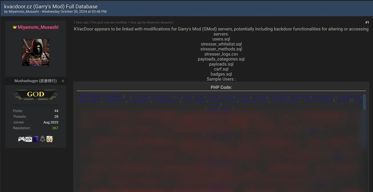 A Threat Actor Allegedly Leaked Databases of KVacDoor