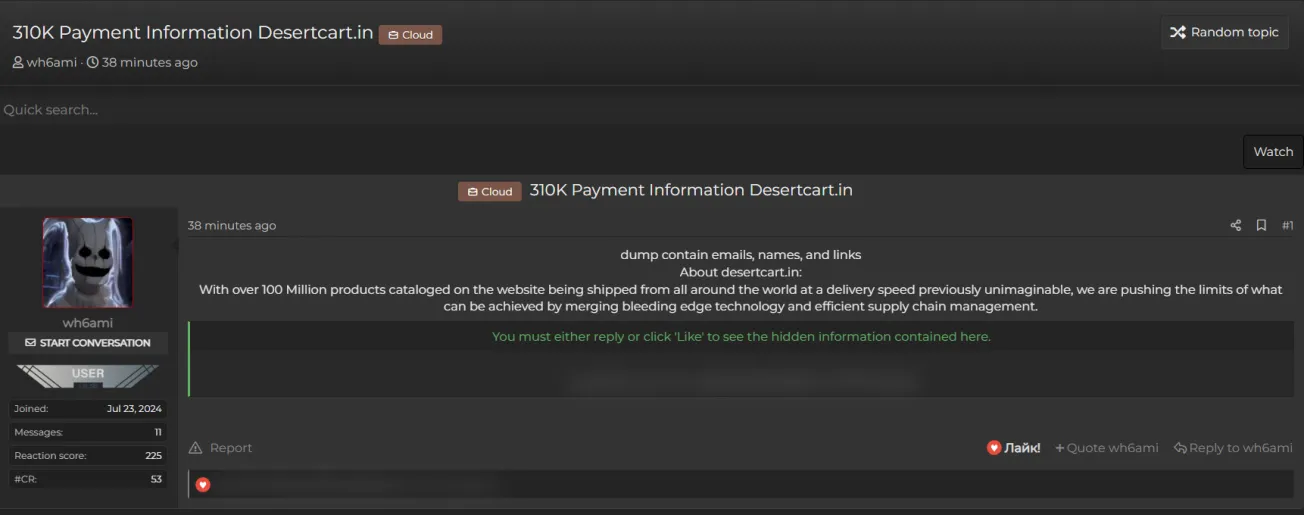 A Threat Actor Allegedly Leaked the Data of Desertcart