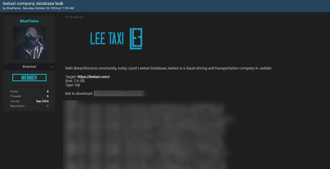 A Threat Actor Allegedly Leaked the Data of LEE TAXI