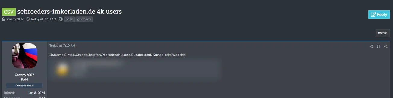 A Threat Actor Allegedly Leaked the Data of Schröders Imkerladen