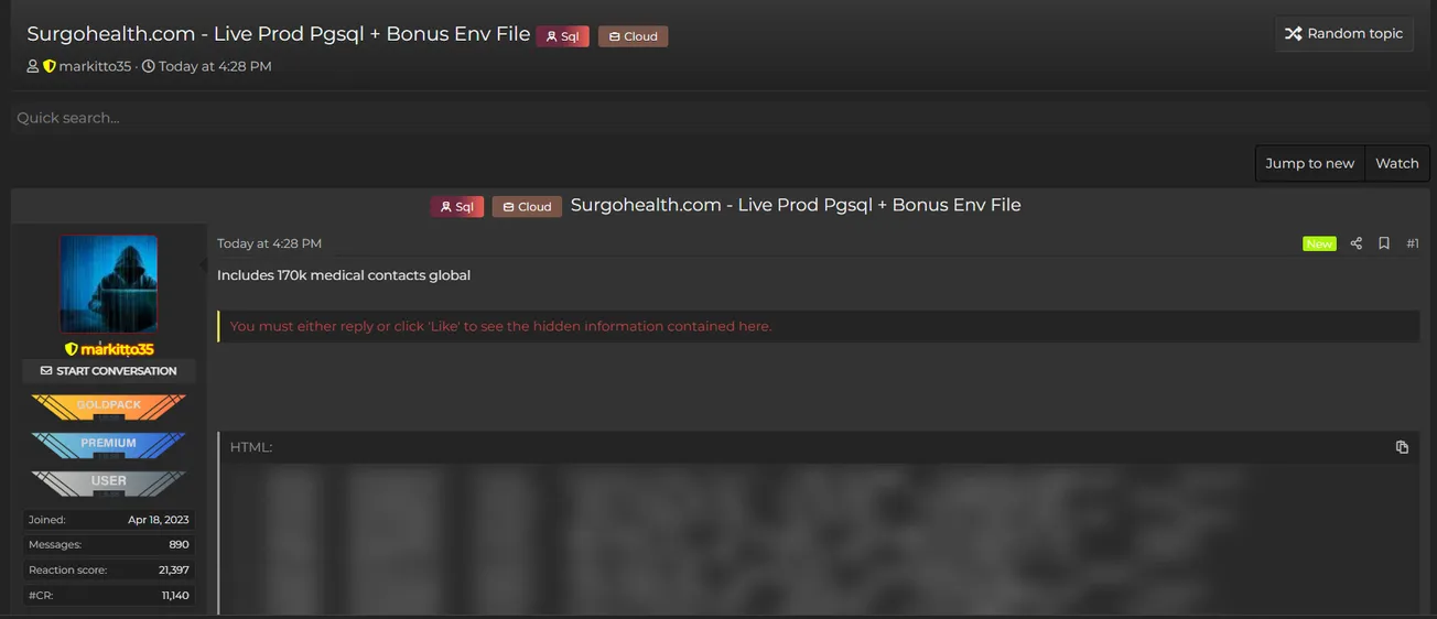 A Threat Actor Allegedly Leaked the Data of Surgo Health