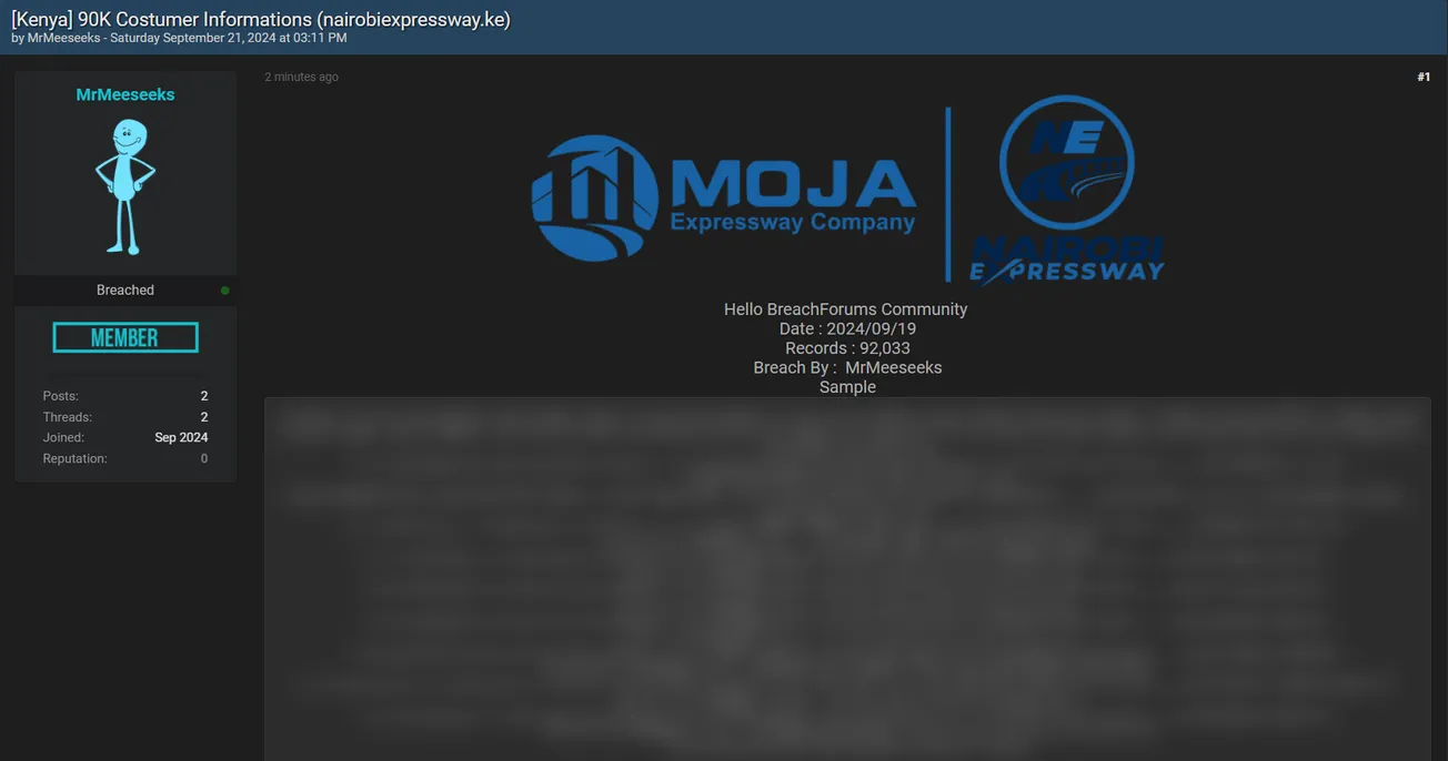 A Threat Actor Allegedly Leaked The Nairobi Expressway Database