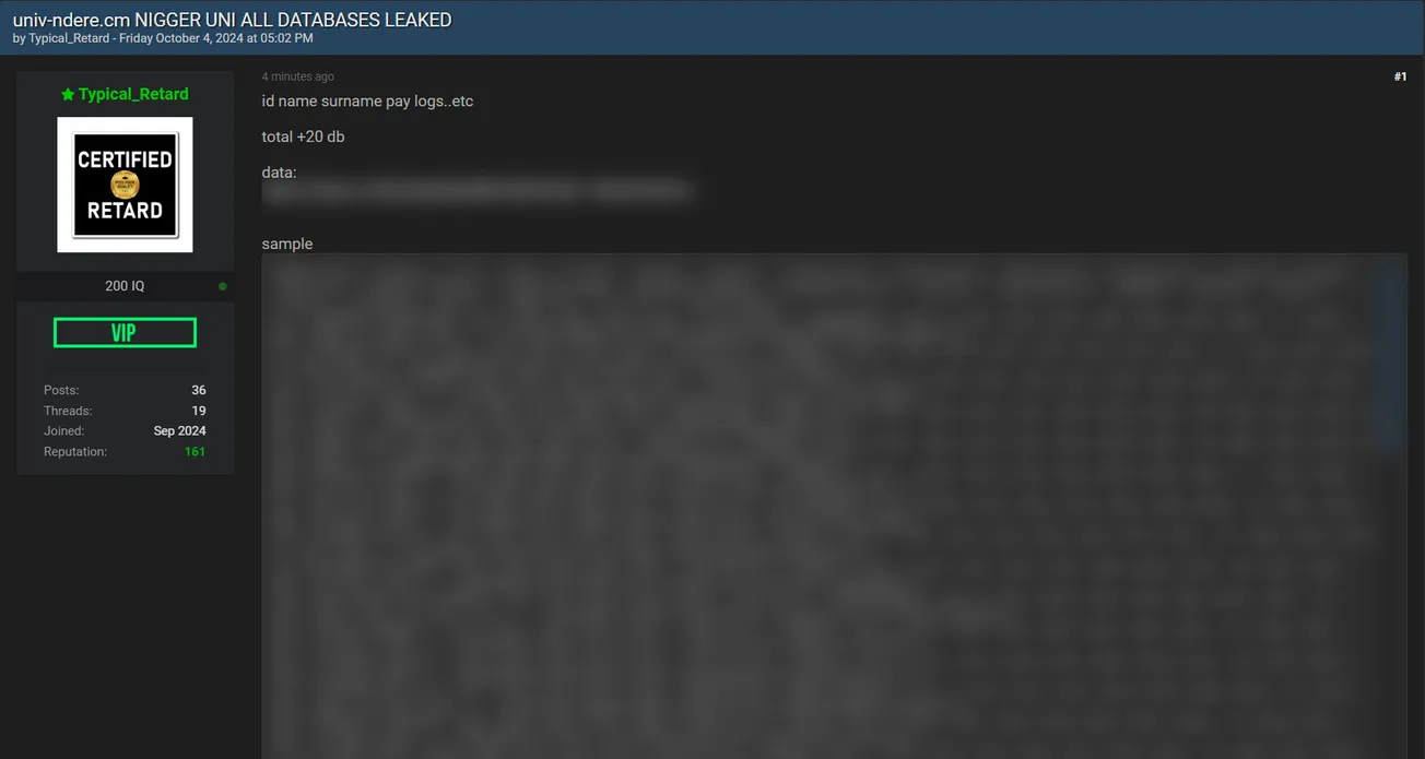 A Threat Actor Allegedly Leaked the University of Ngaoundere Database