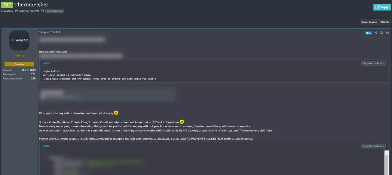 A Threat Actor Allegedly Leaked Thermo Fisher Scientific Database