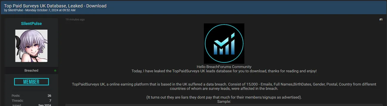 A Threat Actor Allegedly Leaked Top Paid Surveys Database