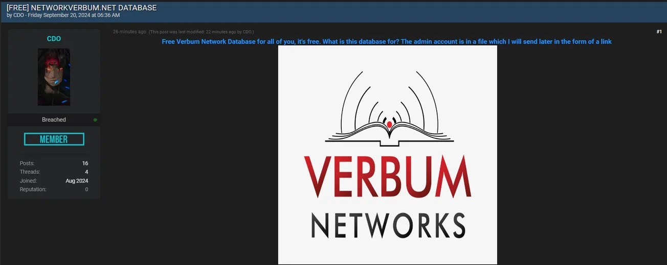 A Threat Actor Allegedly Leaked Verbum Networks Ltd Database