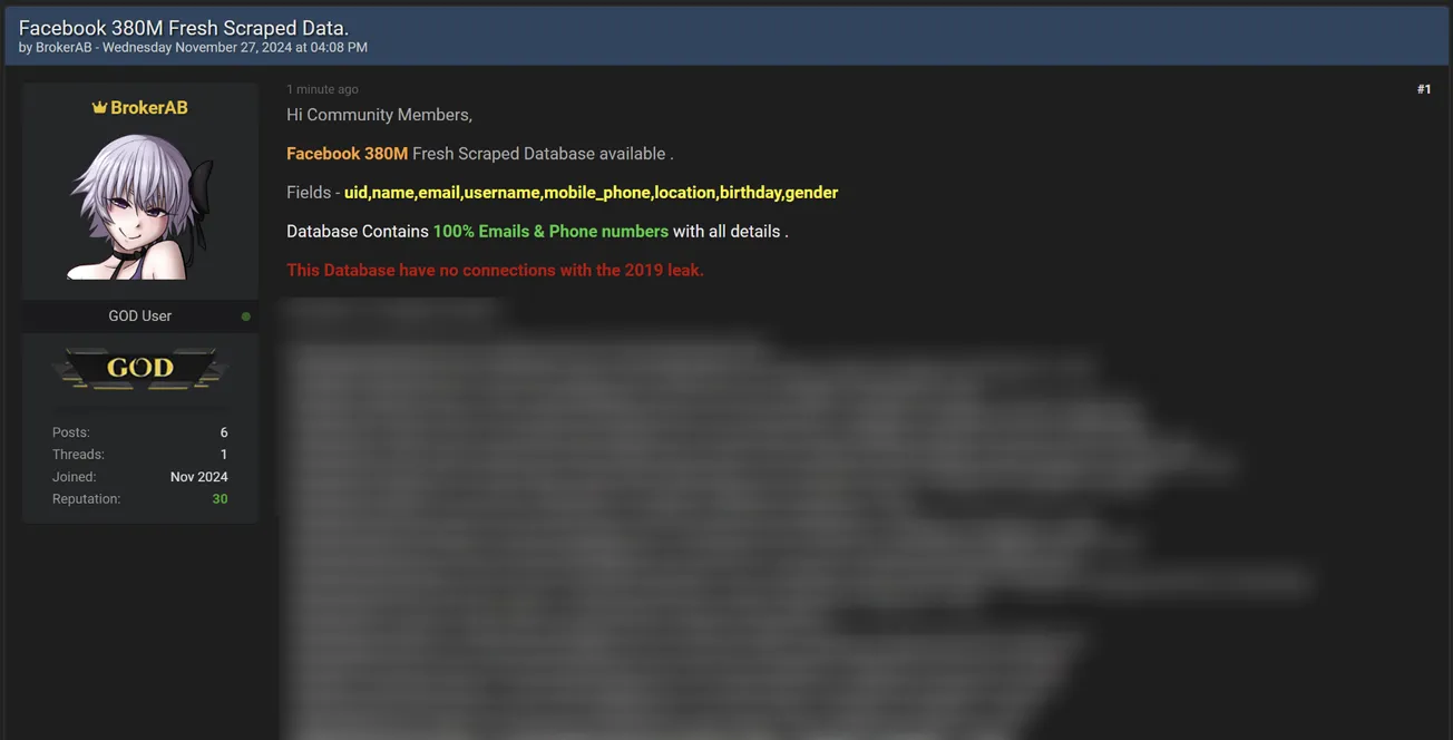 A Threat Actor Claims to be Selling Scraped Facebook Data Containing 380 Million Records