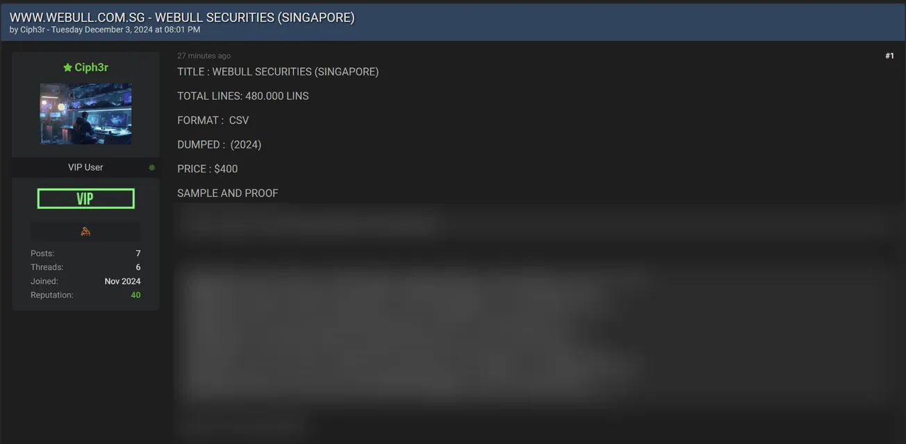A Threat Actor Claims to be Selling the Data of Webull Securities