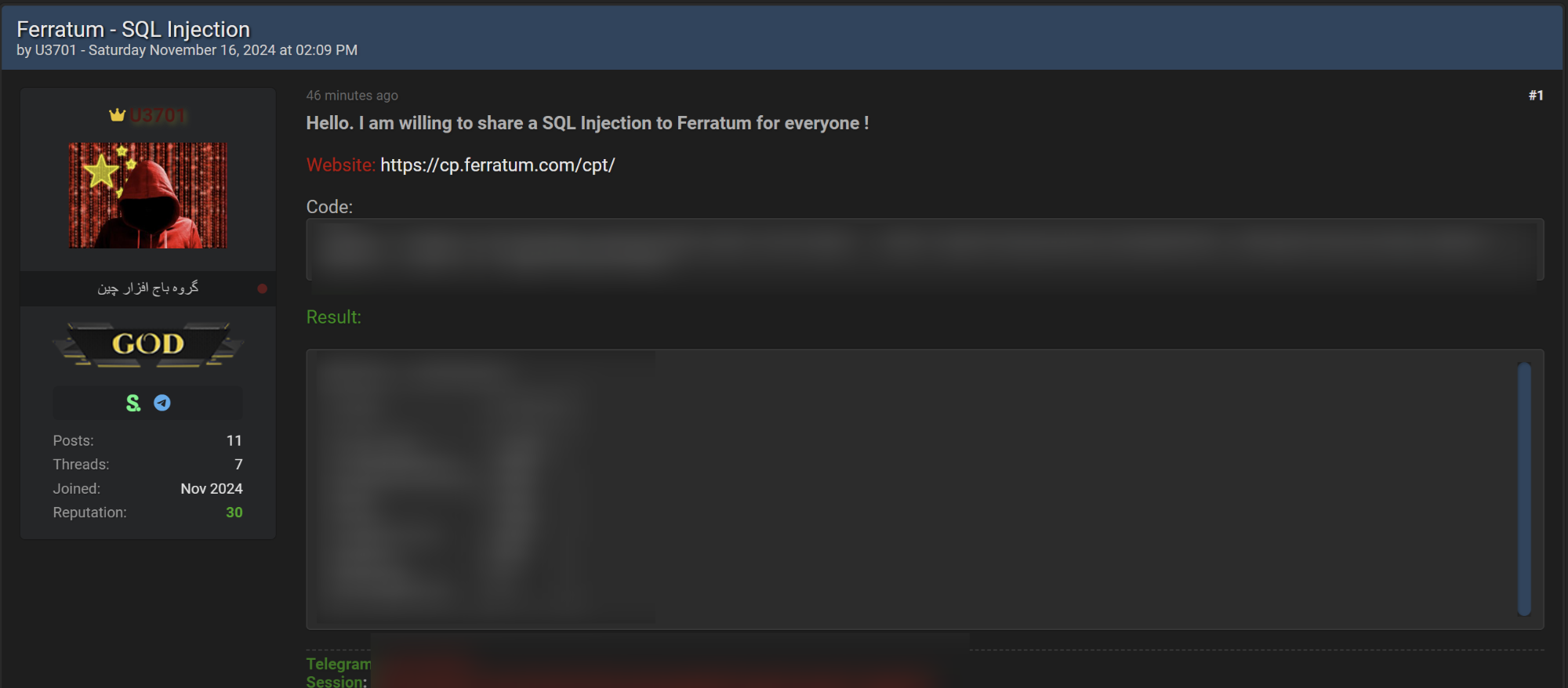📝 Description: The threat actor claims to have leaked SQL vulnerability of Ferratum website.