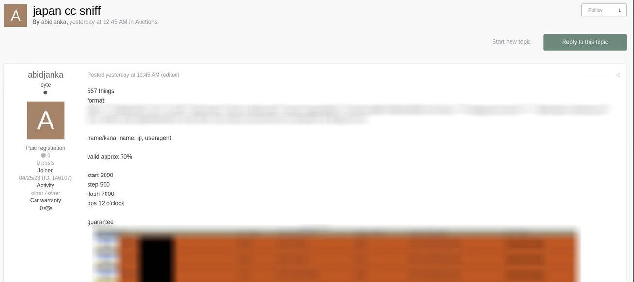 🚨 Title: Alleged data Leak of Japanese Citizens Credit Card